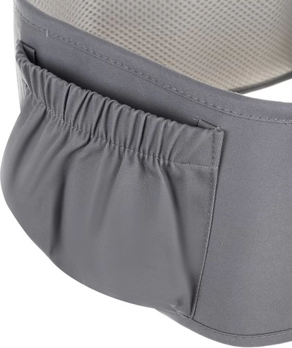 De heupgordel heeft een grote zak. Je kunt er alles in kwijt wat je baby of peuter nodig heeft om erop uit te gaan. Een luier, flesje, doekjes, fopspeen, mousse en alle accessoires die nodig zijn om te gaan wandelen of winkelen met je baby kunnen worden opgeborgen. De zak wordt afgesloten met een ritssluiting. Daarnaast zijn er twee zakken aan de tailleband genaaid die worden afgesloten met een elastische band. Je kunt er flessen of een thermoskan in doen. Het is een perfecte oplossing zodat je alles bij de hand hebt wat je eventueel nodig hebt.