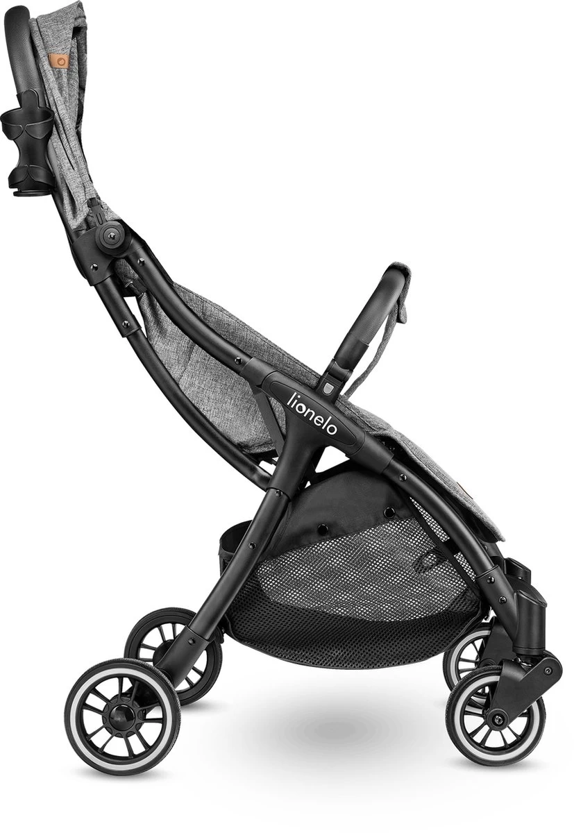 Het veiligheidsbeugel en het handvat zijn gemaakt van eco-leer dat bestand is tegen weersomstandigheden. Zachte bekleding garandeert gebruikscomfort. Het gebruikte materiaal ziet er niet alleen geweldig uit, maar maakt de kinderwagen ook comfortabel en veilig om te rijden.