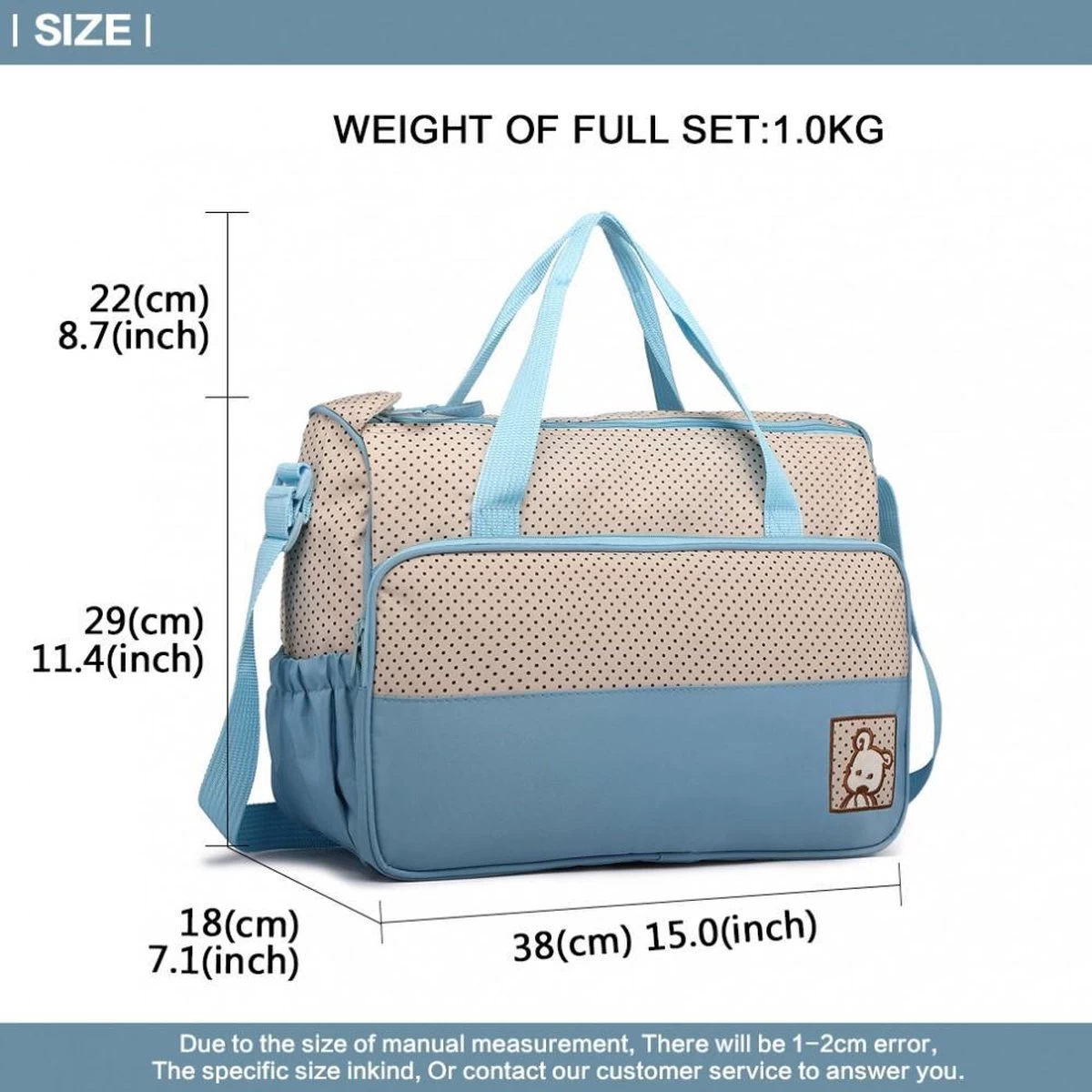 ▶ Een middelgrote luiertas (29cm x 25cm x18cm)