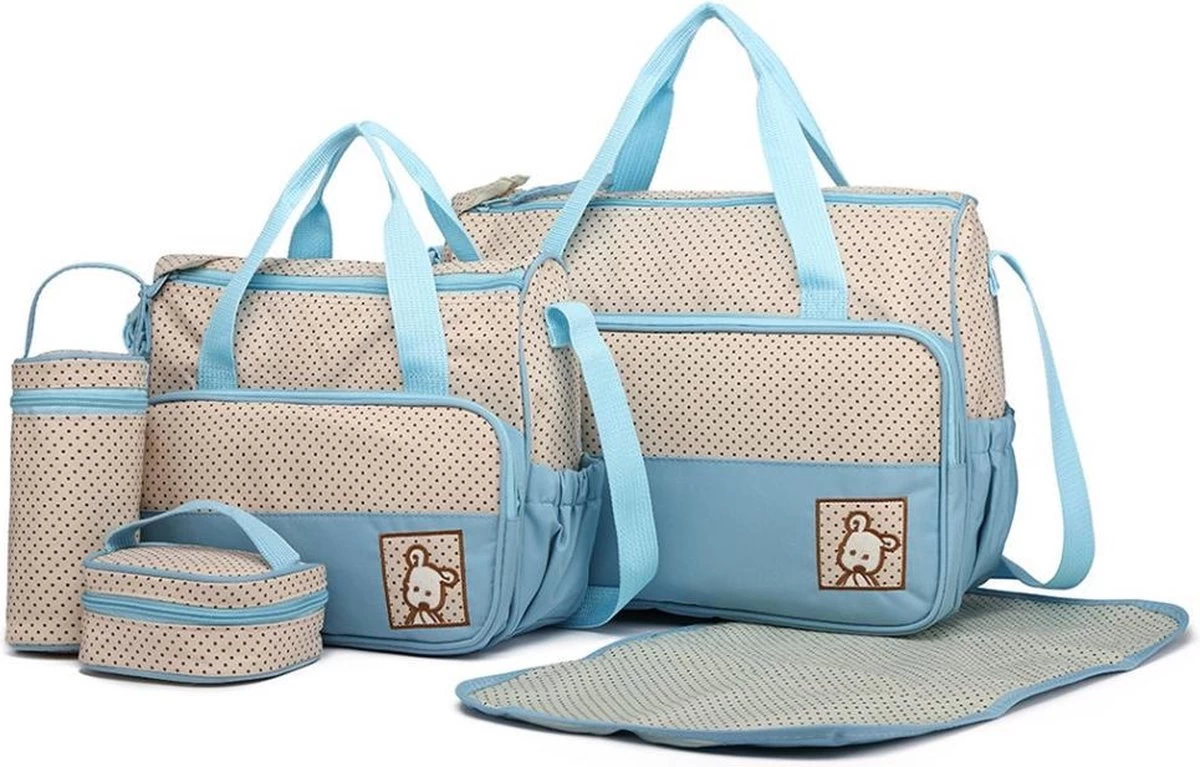➡️ Deze complete Miss Lulu luiertas set is ideaal voor onderweg. Een compacte en functionele set met een 2 verschillende formaten luiertassen inclusief verschoonmatje voor je baby en een tasje voor de fles en het eten. Deze complete, betaalbare luiertas set mag niet ontbreken in je baby uitzet! Met 5 verschillende tassen is de verzorgingstas gemakkelijk te organiseren, super handig in gebruik en biedt werkelijk een zee van ruimte. Denk aan luiers, flesjes, babyvoeding, speentjes, slabbetjes en rompertjes, voor werkelijk alles is een plekje. De 5-delige set is gemaakt van hoogwaardig waterafstotend polyester, heeft een stijlvol design en gaat de gehele luiertijd mee! Of je nou boodschappen gaat doen, op een speelafspraakje gaat of een dagje weg; deze veelzijdige tas komt altijd van pas!