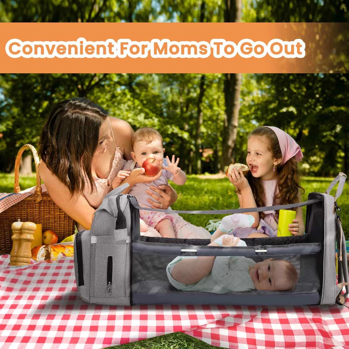 Opvouwbare en draagbare luiertas, op 0-1 jaar oude baby (de dimensie van de bed na montage is 29x12x8.7 inch ), praktische design en mode fusie, creëren een comfortabele persoonlijke ruimte voor baby, lossen de reizen problemen van ouders, en geef ze een ontspannen tijd.